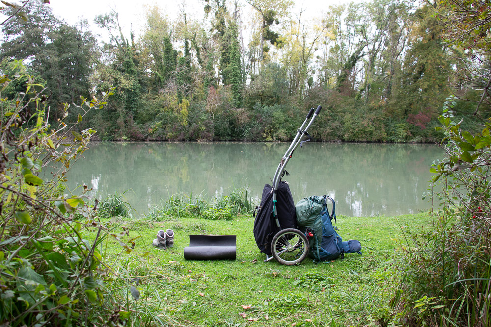 Je marche actuellement sur les chemins avec mon sac et ma chariote Rouletabosse !